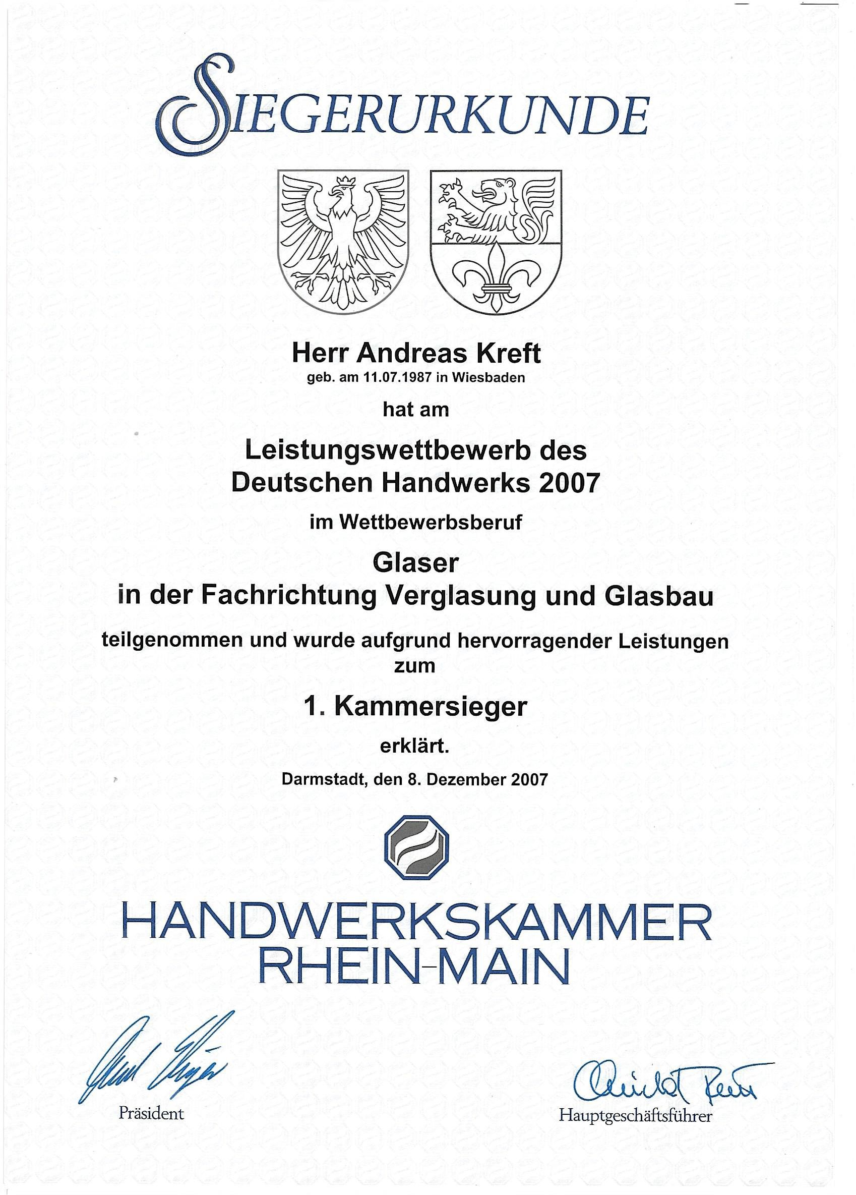 - 2007 – Landessieger im Leistungswettbewerb des Deutschen Handwerks